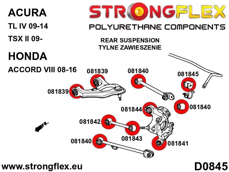 • This bush is only available in 90ShA hardness (yellow) because the original rubber bush is made of a hard rubber compound. The use of the 80ShA hardness bush (red) will reduce the driving of the car to the original rubber bush.